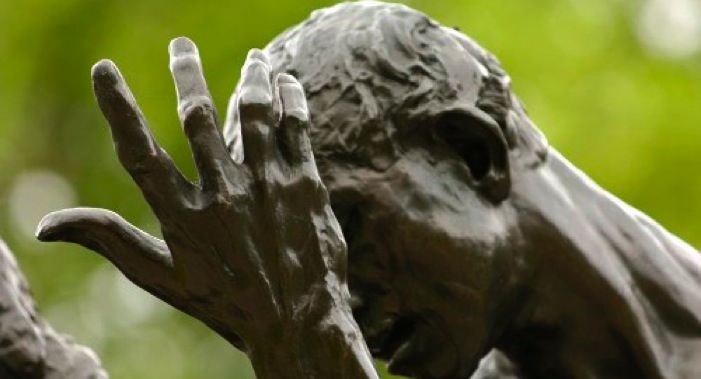 The hand and head of Pierre de Wiessant from Rodin’s Burghers of Calais. Pierre de Wiessant, was the fourth Burgher to volunteer after his older brother Jacques de Wiessant. Pierre is depicted turning sideways toward Jean de Fiennes with one arm raised and his mouth open “in a slow procession towards death”.